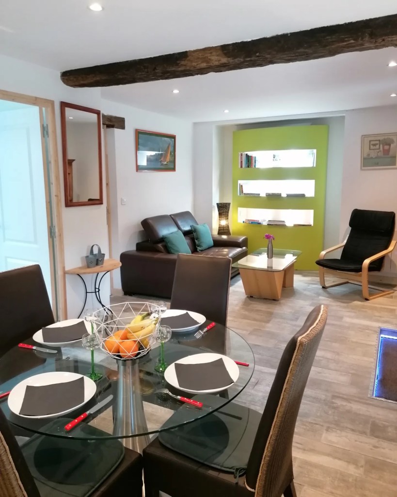Salon salle a manger. Cuisine aménagée avec lave vaisselle.wc. 2 chambres séparés 1 avec 1 lit x160 et 1 avec 2 lits de x90. Salle de bain douche.