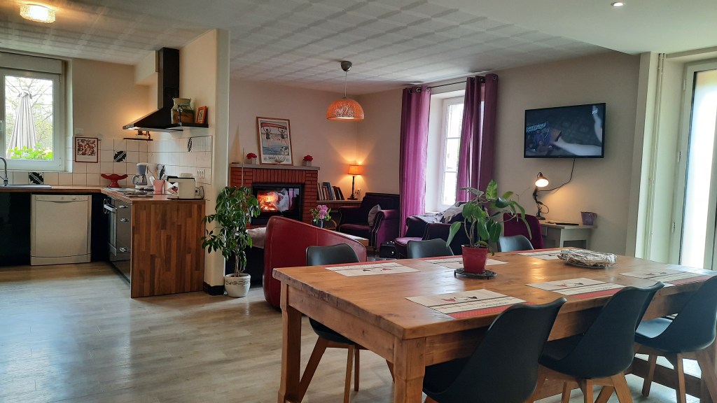 Gite indépendant situé dans une longère en pierre du pays de 1877 , de 2 à 8 places, 4 chambres (Lits faits à l’arrivée 1 lit 160 rdc,2 lits 140 et 2 lits 90 à l’étage), cheminée avec insert, 2 wc, 1 salle d’eau et 1 salle de bain.