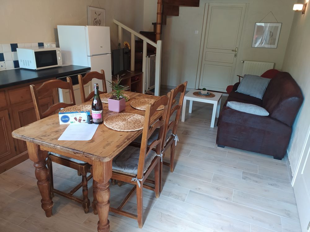 Le gîte Smeily est composé au rez-de-chaussée d’une cuisine semi ouverte sur le salon avec une belle cheminée décorative, le tout sous poutres apparentes. Une grande chambre avec sa salle de douche (douche à l’italienne) permet l’accès aux personnes qui ont des difficultés à monter les escaliers.