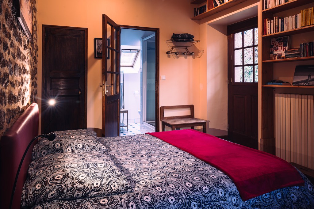 Notre chambre d’hôte est équipée d’un lit double (140 cm), d’un petit bureau et d’une bibliothèque. Sa salle d’eau attenante dispose d’une douche, d’un wc et d’un lavabo. Linge de lit et serviettes sont compris dans la location.